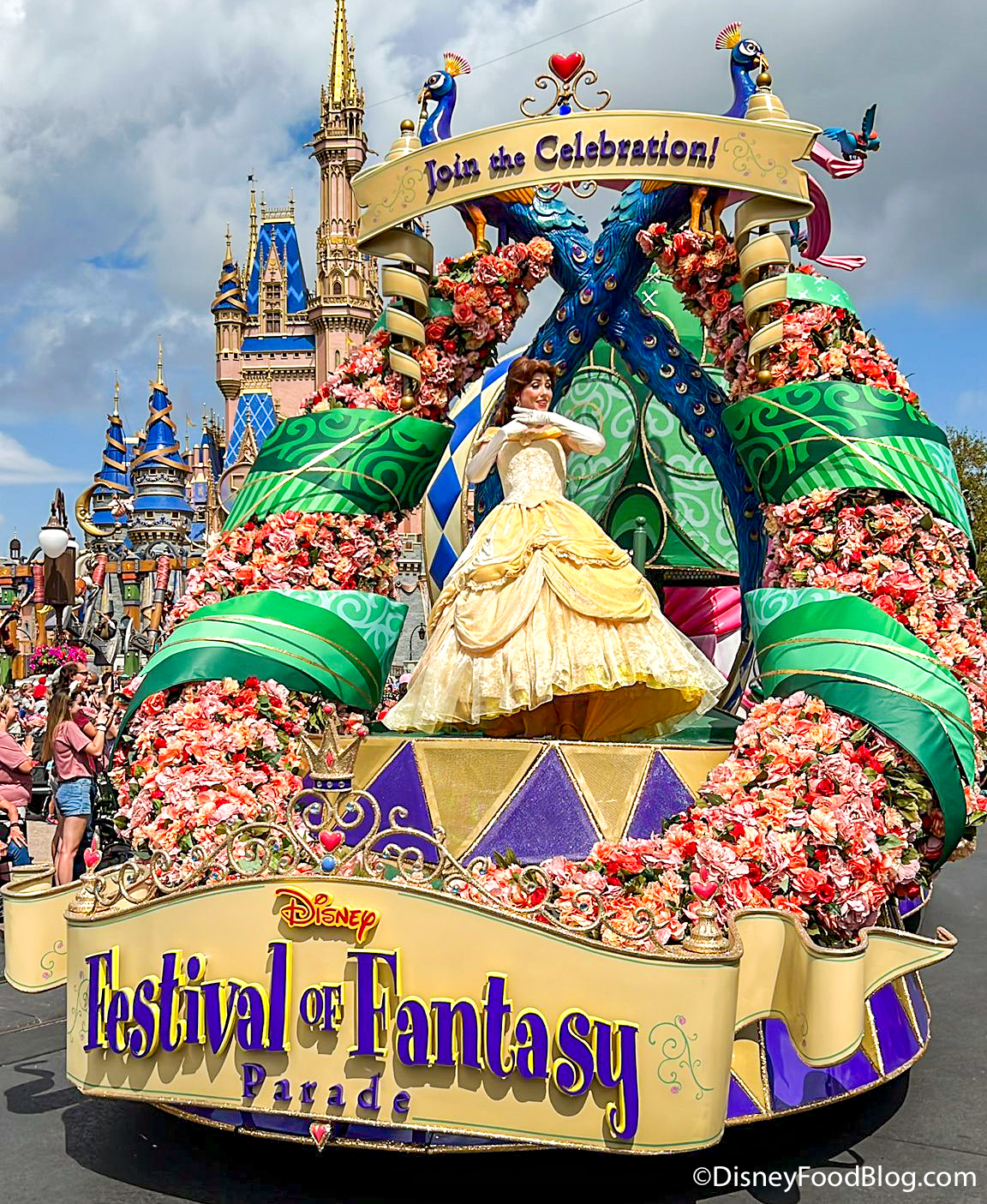You’ll first see a float with Disney princesses, including Belle…