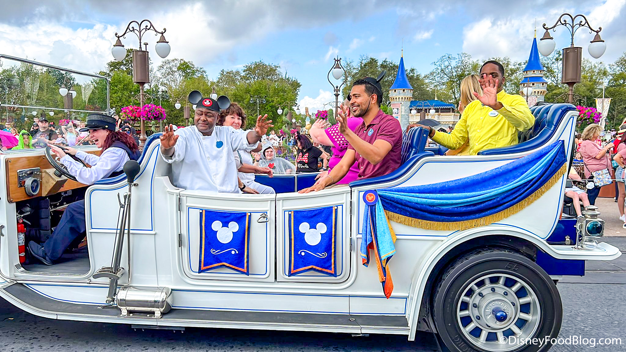 Todays parade started out with Cast Members being honored as Disney ambassadors! They got to ride along in a very fancy old-fashioned car.
