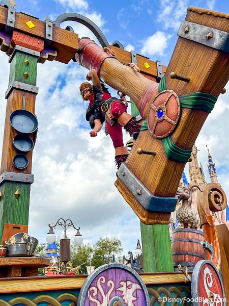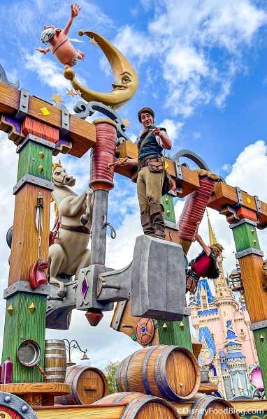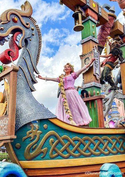 Next up is the Tangled-inspired float, which looks like a huge boat with swinging axes. You’ll see Rapunzel in the ship…