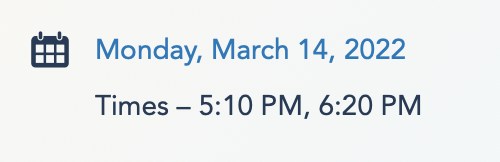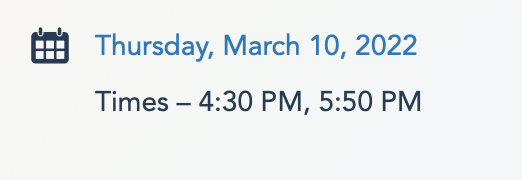 …while next week, the times shift to 5:10PM and 6:20PM and remain that way going forward, although Disney World showtimes are always subject to change.