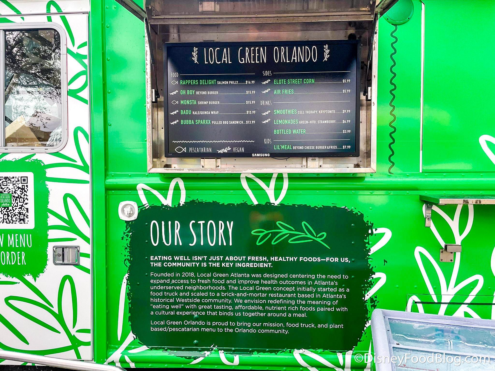 Yep! A brand new food truck is coming to Disney Springs this month called Local Green Atlanta! It will join the 3 other food trucks in Disney Springs: 4 Rivers Cantina Barbacoa, Mac & Cheese, and Hot Diggity Dogs. While the new joint isn’t open yet, the actual food truck HAS arrived in Disney World — let’s check it out!