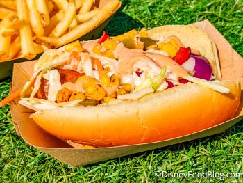 wdw 2022 magic kingdom eat everything on main street usa caseys corner Plant-based Loaded Slaw Dog meal french fries-3 By Lydia Storks Leave a Comment