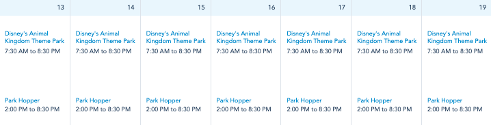 And, that’s all for park hours, let’s take a look at reservation availability!