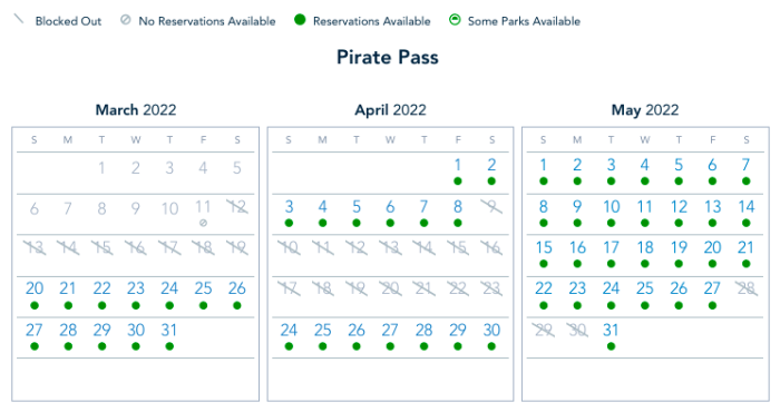 Pirate Pass Holders on the other hand are blocked out from making reservations this week.
