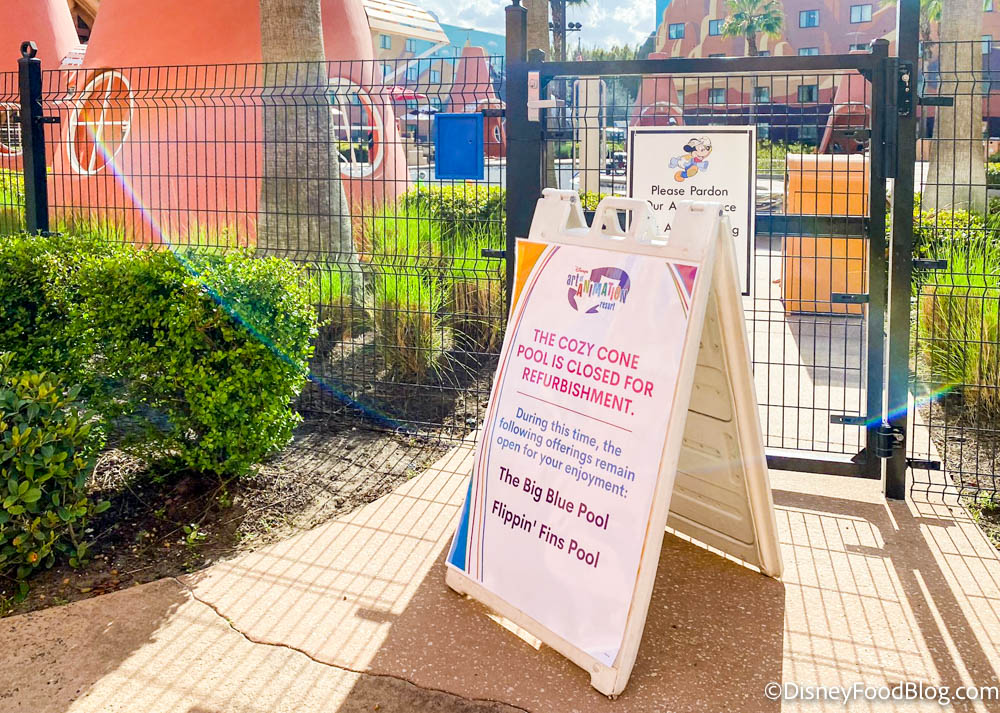 2022-wdw-atmosphere-art of animation resort-cozy cone pool closed for refurbishment sign By Sara McOmber Leave a Comment