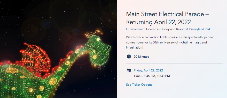 That’s right — we’re talking about the Main Street Electrical Parade, Disneyland Forever fireworks, and World of Color! We already knew that these shows would be returning to Disneyland and Disney California Adventure on April 22nd, but now we know exactly WHEN you’ll need to be stationed on Main Street, U.S.A or at Paradise Gardens Park to enjoy them!