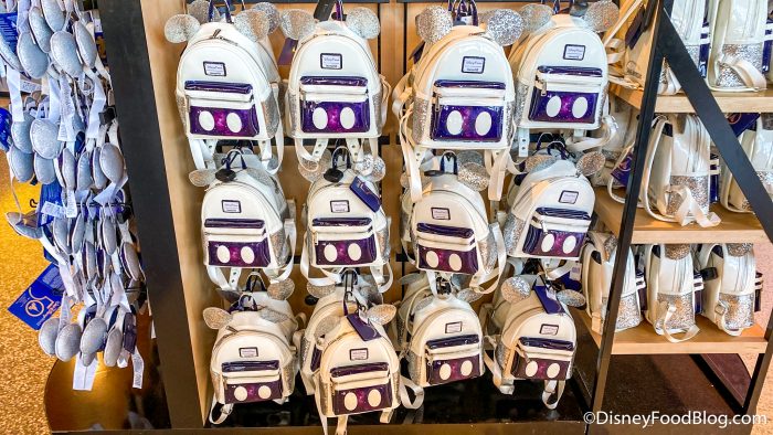 There’s also a Loungefly backpack in this new series! This bag has sparkly Mickey ears and a purple pocket while the rest of it is white.