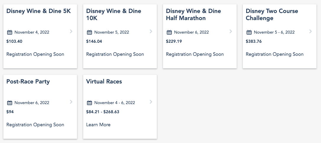 The Wine & Dine Half Marathon Weekend happens in conjunction with the EPCOT International Food & Wine Festival and takes place on November 3rd-6th, 2022. This year’s event will have a 5K, 10K, Half Marathon, and Two-Course Challenge, and while general registration opens up at 10AM ET on March 22nd, those who are Club runDisney Gold or Platinum members can register starting today, March 15th, at 10AM ET.