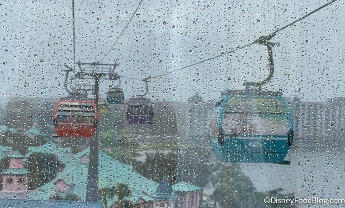 This probably seems obvious, but the weather can and does affect the Skyliner and how it operates. When it’s raining hard or storming, it can close down completely. This is especially true if there is lightning!