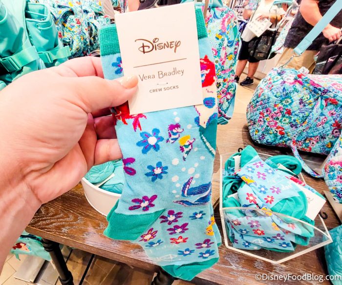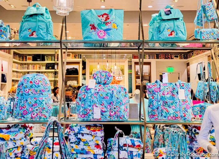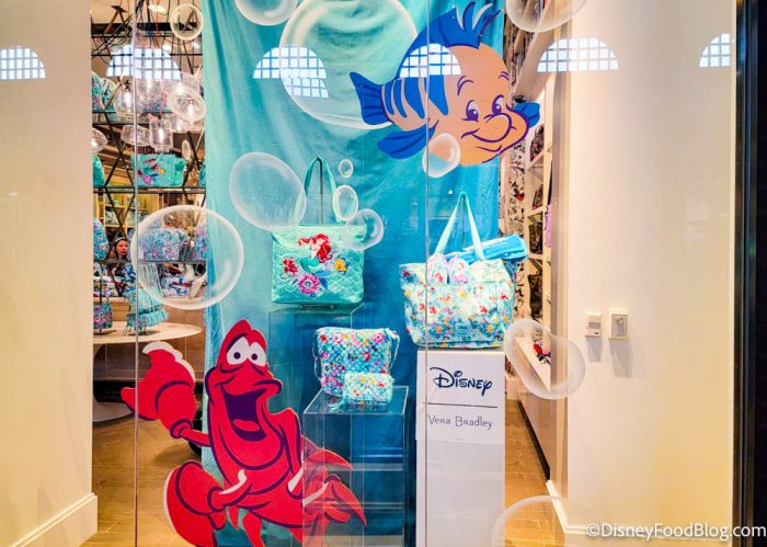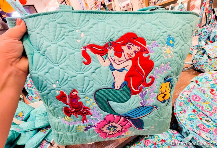 Put down your dinglehopper and head to Disney Springs because the Vera Bradley Little Mermaid Collection has arrived! These bags are a bright teal color with images of Ariel, Flounder, Sebastian, and some underwater creatures and plants.