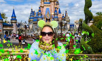 2022-wdw-mk-cinderella castle-hub-st patricks day photopass magic shot-blowing confetti By Sara McOmber Leave a Comment
