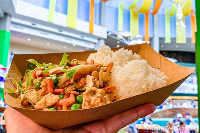 We weren’t a huge fan of the plant-based chicken, but it was diced up pretty small so it wasn’t overpowering. But, if they switched this to all veggies, we think we would order it often when visiting EPCOT!