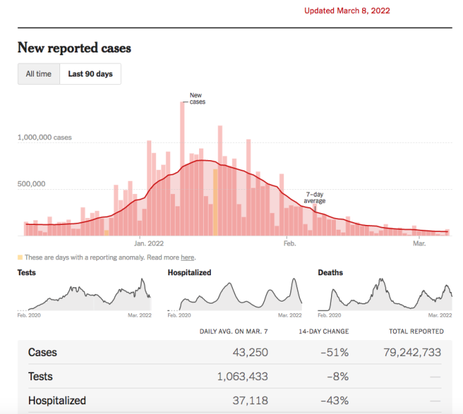 For example, a resurgence of COVID-19 cases, a new variant, or any other pandemic-like situation could cause major impacts. Right now, cases of COVID-19 appear to be on the decline as shown by the case numbers reported by the New York Times. We’ve seen a substantial change in COVID-19 cases compared to where the U.S. was just months ago, but some experts caution that there is still a ways to go before things are back to “normal.”