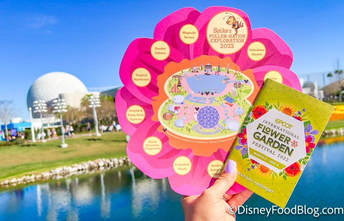 Check out all the festival topiaries, take a walk through Bambi’s Butterfly House, or play a game and win a prize! Spike the Bee’s Pollen-Nation Exploration scavenger hunt is back in EPCOT this year, and recently we noted that the official prize for completing the hunt wasn’t available yet. But today we noticed a change, and we’re excited to finally check out the official NEW prizes!
