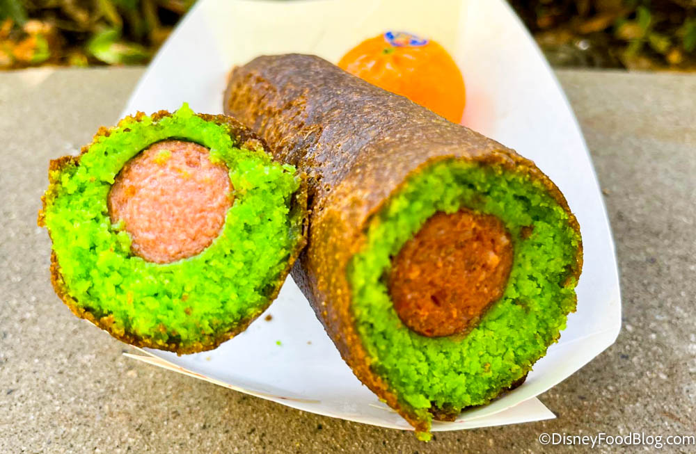2022-dlr-disney california adventure-corn dog castle-corn dog-cheese stick-hot links-st patricks day-green-dyed green-2 By Sara McOmber Leave a Comment