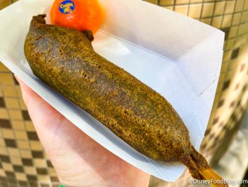 2022-dlr-disney california adventure-corn dog castle-corn dog-cheese stick-hot links-st patricks day-green-dyed green-5 By Sara McOmber Leave a Comment