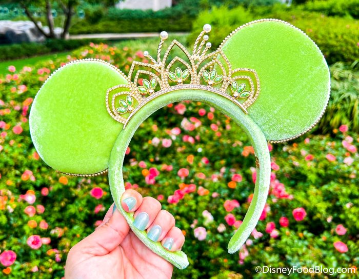 And, the NEW BaubleBar Princess and the Frog Minnie Ears are now available here too! The ears are made of soft green velour fabric and there’s a golden and jeweled tiara between each ear just like Tiana herself!