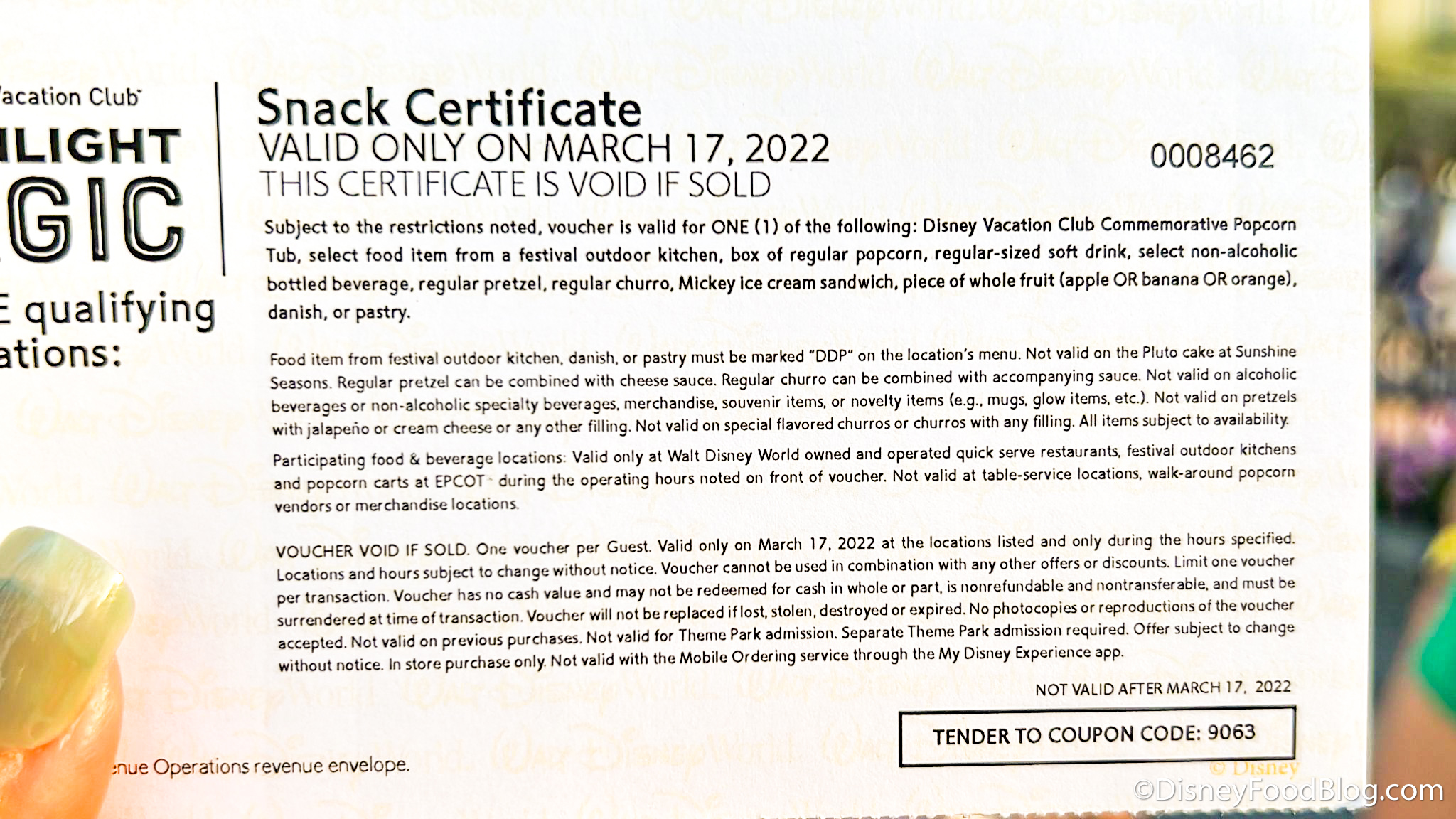 Along with this info sheet, we also were given 3 vouchers to use for food and drinks. The only food we could get without the coupons were the unlimited Mickey Premium Bars and Strawberry Bars. Everything else, like bottled water and soda, as well as Mickey Ice Cream Sandwiches, required us to use a voucher.