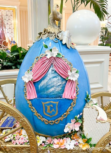 We’ve seen some of their gorgeous work over the years with beautiful chocolate sculptures dedicated to Cinderella Castle and Ratatouille, as well as the massive holiday gingerbread house they build around the holidays. Now, though, these craftspeople of edible art have done it again — this time with chocolate Easter eggs! This egg display can usually be found at the resort around the holiday, but this year, there’s ONE egg (or CARRIAGE) that stands out above all the rest.