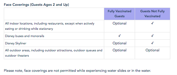 These changes are specific to transportation. Masks continue to be required for ALL guests on Disney buses and the monorail, but masks are now optional for fully vaccinated guests on the Disney World Skyliner. They are also optional for fully vaccinated guests on the Star Wars: Galactic Starcruiser transport vehicle when traveling to Star Wars: Galaxy’s Edge.