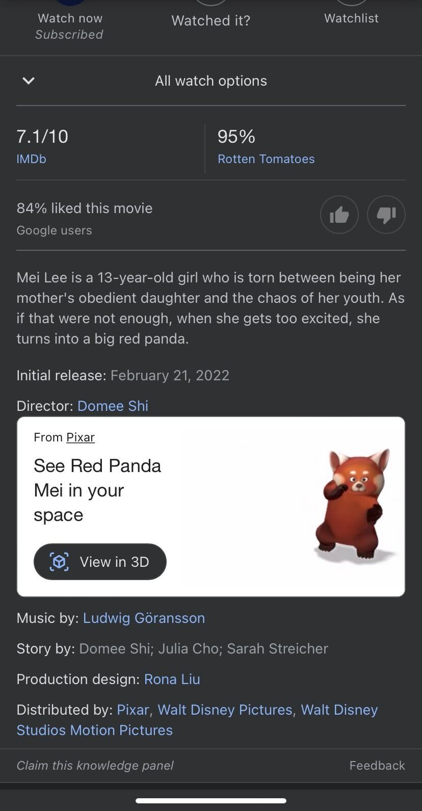How? Google has an AR filter that puts a dancing red panda, aka Mei, into any scene you choose. Here’s how to access it: first, do a Google search in the Google app for “Turning Red.”