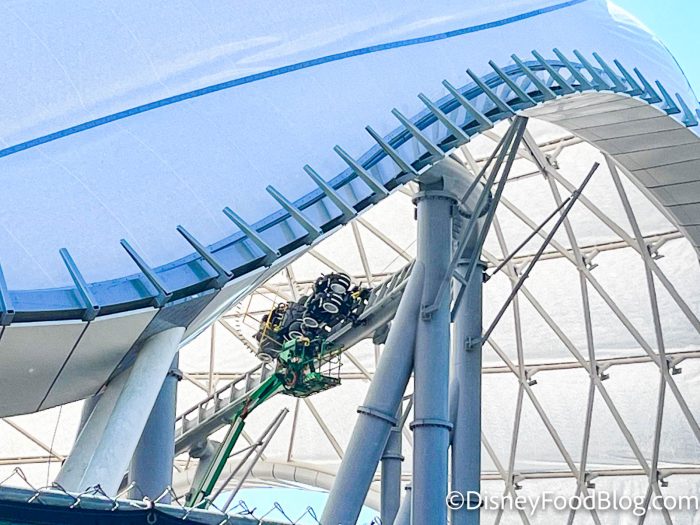 Speaking of TRON, we also caught TRON Lightcycle Run vehicle testing this week! We still don’t have an opening date for the ride, but Disney recently announced that the ride would be entering “phase two” of the construction progress, which involves slow vehicle testing.