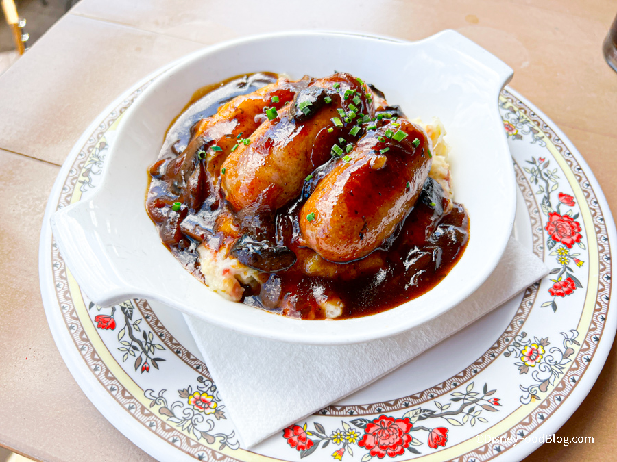 If you’re looking for a heavier meal with more comforting flavors, the Bangers and Mash could be the choice for you!