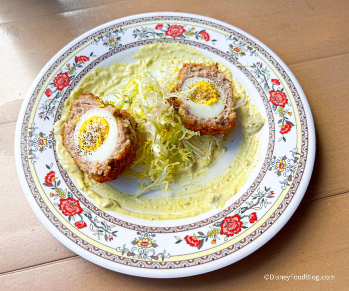 After taking in the menu for ourselves, we started with the Scotch Egg for $13.