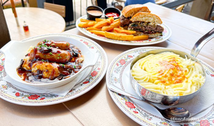 Our one complaint here is that the food is HOT and Florida is HOT right now. With such heavy eats, Rose and Crown really sticks out more as a dinner restaurant than a lunch spot or a spot you head when the temperatures cool down quite a bit. We’d much rather gorge ourselves on British eats in the evening when there’s less of the day ahead of us — not eat heavy, rich, warm foods, and then walk EPCOT in the heat.