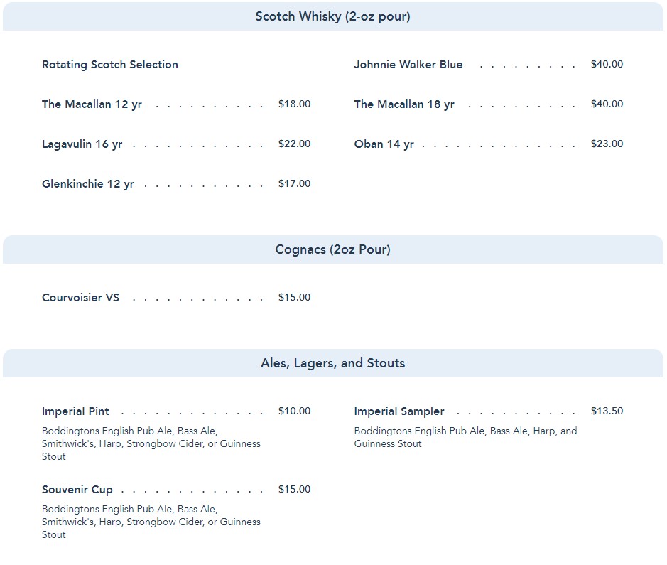 You can also grab a 2-ounce pour of your Scotch Whisky or Cognac of choice. But the main event here is the BEER. You can choose from the Ales, Lagers, and Stouts…