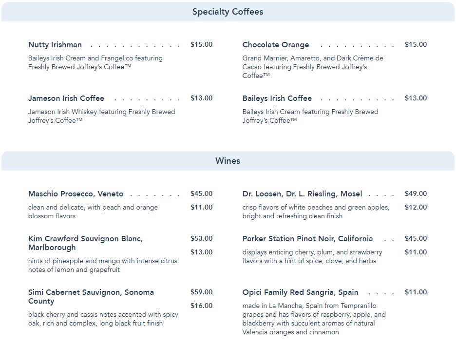 If none of that is striking your fancy, you can always swing for a Specialty Coffee or glass of Wine!