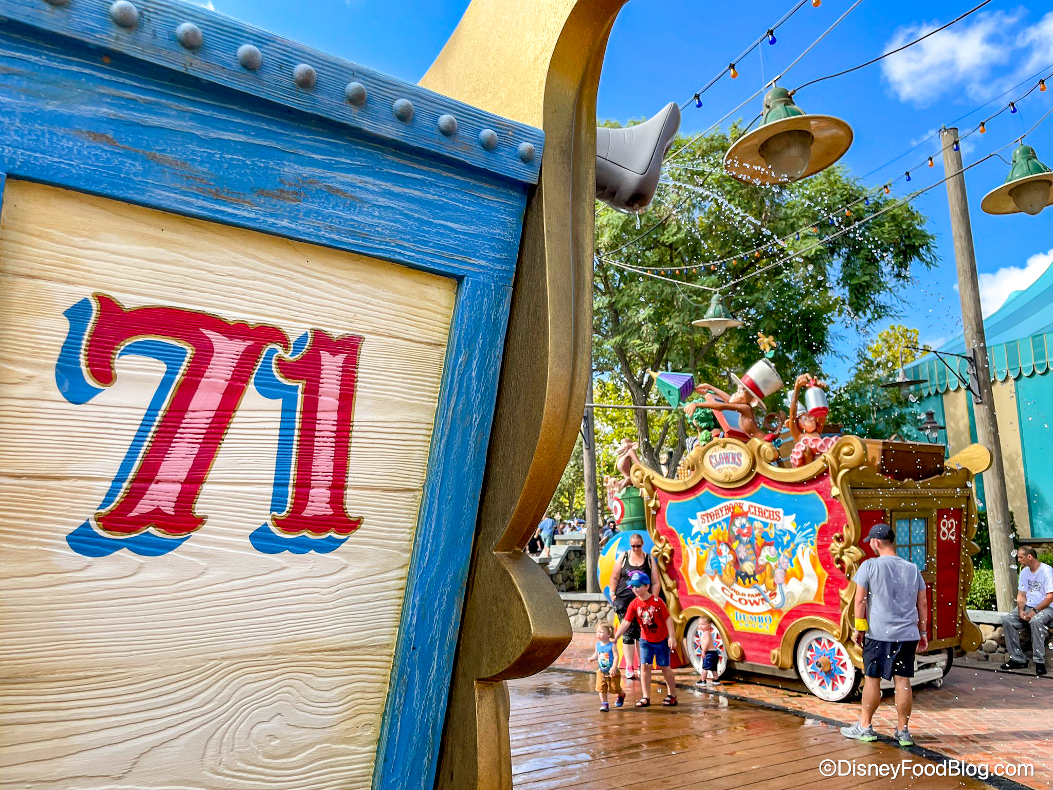 And finally, to end our Disney World section, let’s take a stroll to Storybook Circus. Did you know that here, you can find a nod to all four theme parks in one place? That’s right! If you look at the years on each of the circus cars at the Casey Junior Splash ‘n’ Soak Station, each one is numbered. Those numbers are the years that each of the four Disney World parks first opened.