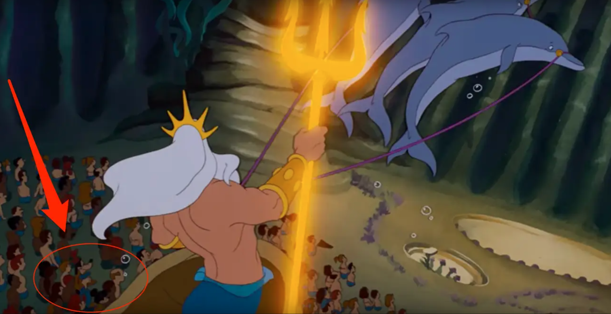 In The Little Mermaid, when King Triton arrives at his daughters’ concert, look at the crowd. There, you may notice Mickey, Donald, and Goofy among the masses of people.