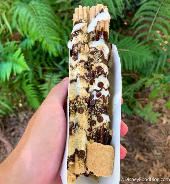 At the churro cart near the Redwood Creek Challenge Trail, you can find the returning S’mores Churro, which is rolled in graham cracker crumbles with chocolate chips and a marshmallow drizzle.