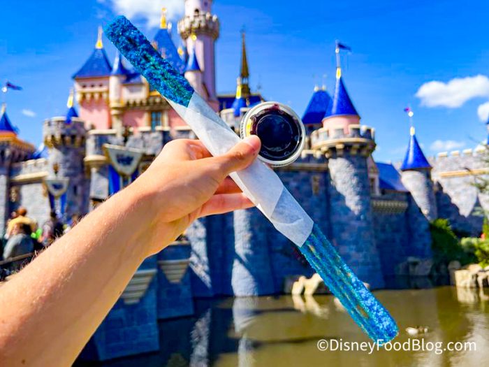 The Main Street Electrical Parade recently returned to Disneyland, and of course there’s a churro to celebrate! You can grab the Blueberry Looks Good on You Churro and the Blueberry Cheesecake Dipping Sauce from the churro cart near Sleeping Beauty Castle.