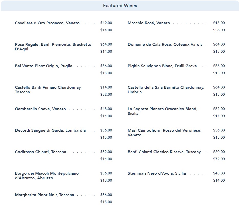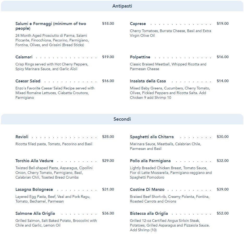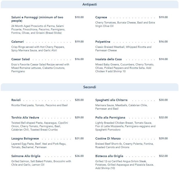- You want Italian food in Disney Springs and can’t get into Terralina Crafted Italian. We prefer Terralina to this spot but Maria & Enzo’s can still be a nice meal.