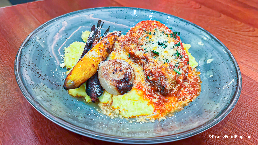 This dish was Braised Beef Short-rib, Creamy Polenta, Fontina, and Roasted Carrots and Onions.
