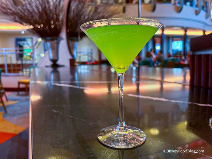 You can probably tell this was a super sweet drink, but it did have a balancing tartness to it. The citron vodka and sour apple pucker help to balance it with the lemon juice. It’s a fun green drink, but not something we’d typically order for a nicer dinner.