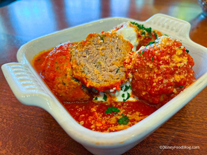 As our appetizer, we chose the Polpettine — Classic Braised Meatball, Whipped Ricotta, and Parmesan Cheese — for $16.