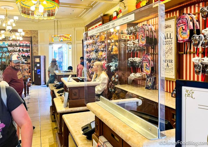 For example, at some gift shops around Magic Kingdom, we found no plexiglass barriers separating guests from Cast Members at the cash registers.
