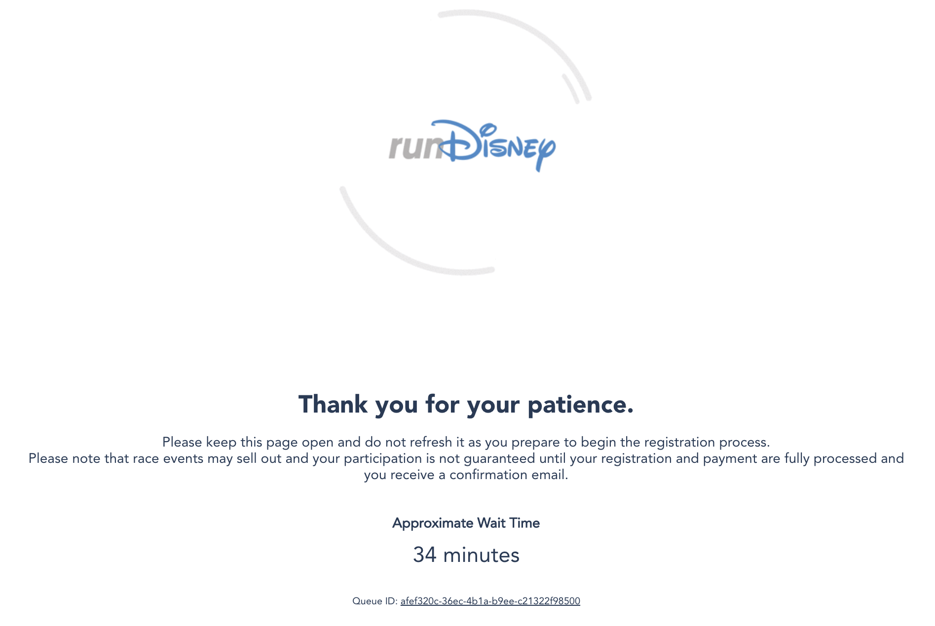 If you try to register, you will most likely be taken to a virtual waiting room, where you’ll be given an approximate wait time. runDisney advises not to refresh the page while you wait or you could lose your place in line. These races tend to sell out quickly, so even if you’re in the virtual waiting room, you’re not guaranteed an open spot.