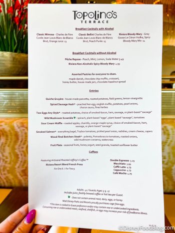 2022-wdw-disney world-disneys riviera resort-topolinos terrace flavors of the riviera-character breakfast-a la art-character dining-paper menu By Sara McOmber Leave a Comment