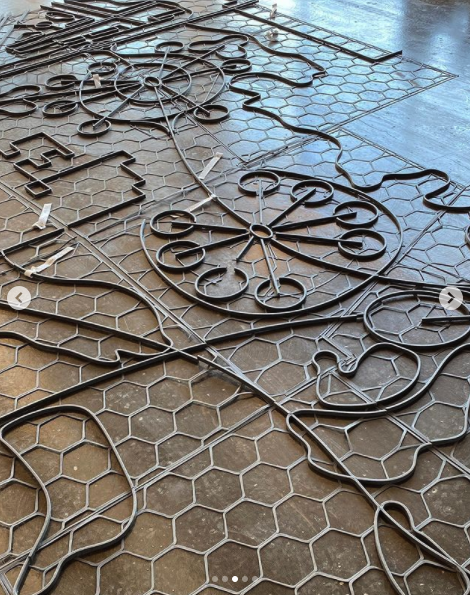Imagineer Zach Riddley shared this image of Walt Disney with some of the original site plans for EPCOT, along with pics of the floor designs in progress. He says that the flooring at Connections Café and Eatery will “pay homage to the radial layout and celebrate the purposeful geometry and organic symmetry of EPCOT.”