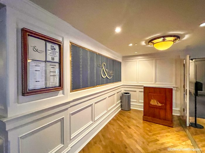 Well, we’re headed over to Ale & Compass Restaurant in Disney’s Yacht Club Resort to see if it still fits the bill! This underrated spot is a Cape Cod-meets-Gastropub restaurant that features cozy comfort food with a bit of a refined touch. You’ll find it near Yachtsman Steakhouse and Cape May Café and there are a few extensions of the restaurant including the grab-and-go Ale & Compass Market and the bar Ale & Compass Lounge. Now, we usually enjoy this spot a lot, but it’s not super memorable in our book — so, let’s see if Ale & Compass can break the cycle and dazzle us!