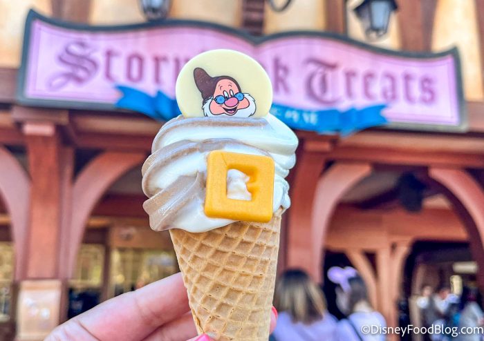 When we stopped by Storybook Treats today, the Doc Cone sign was nowhere to be found. When we asked a Cast Member, they told us that all of the Seven Dwarfs cones were currently sold out. We’re not sure when they’ll be back, but we hope it’s soon!