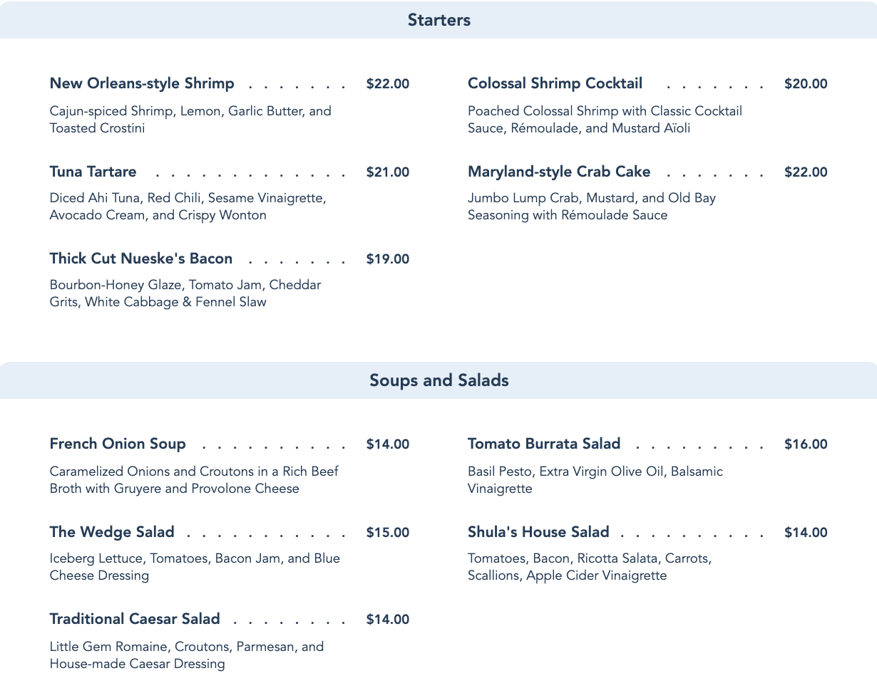Speaking of the menu, let’s take a look at what Shula’s has to offer!