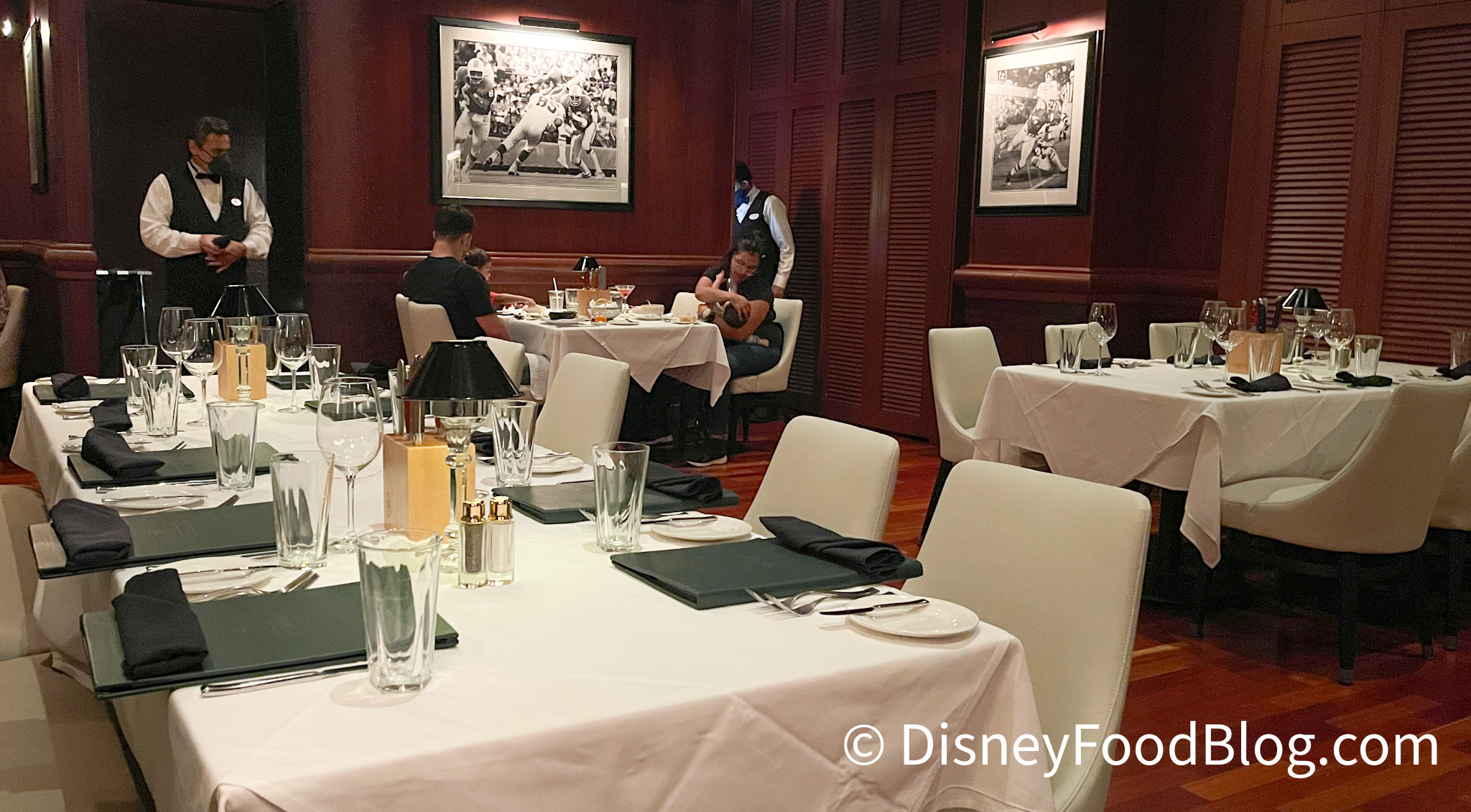 - You want a little more “magic” with your meal. You might almost forget you’re in Disney World when you’re dining here because it really doesn’t have any of that Disney “feeling.” At least to us, it feels like the kind of steakhouse you could find in your own hometown.