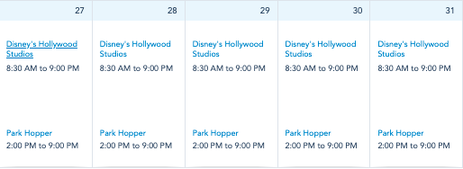 Last one, let’s check out the hours at Disney’s Hollywood Studios!