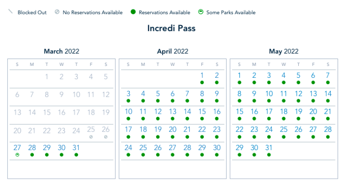 Incredi Pass holders can make a reservation at any of the parks every day this week except for March 27th. All parks except for Animal Kingdom have reservations still available on the 27th.
