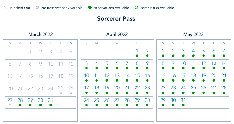 Just like Incredipass, the only day this week where all of the parks aren’t available is on March 27th. Animal Kingdom is s0ld out for Sorcerer Pass Holders on the 27th.